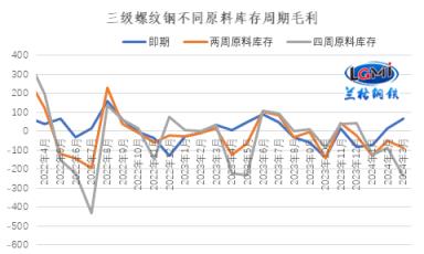 圖2 三級螺紋鋼不同原料庫存周期毛利水平變化