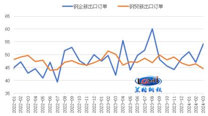 從出口訂單來看,我國厚壁無縫鋼管行業出口訂單指數有所分化;中物聯厚壁無縫鋼管物流專業委員會調查的2024年3月份厚壁無縫鋼管企業新出口訂單指數為54.3%,較上月回落7.3個百分點,再次回升至擴張區間(詳見圖5);網調研的厚壁無縫鋼管流通企業新出口訂單指數為44.6%,較上月回落1.8個百分點,仍在收縮區間運行。厚壁無縫鋼管企業出口訂單指數回升,將對后期我國厚壁鋼管出口形成一定帶動。