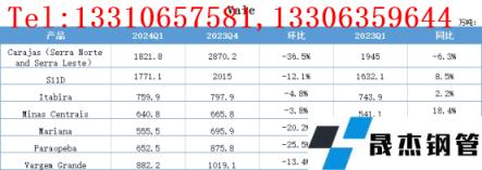 Vale公布2024年第一季度鐵礦石產量報告,具體情況如下: