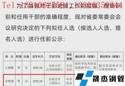 免責聲明:本網站(山東聊城晟杰無縫鋼管廠www.gdqiayu.com)刊載的“大變動!涉及多家鋼企董事長、多地市委書記、北大系主任!”等均源于網絡,版權歸原作者所有,且僅代表原作者觀點,本文所載信息僅供參考。轉載僅為學習與交流之目的,如無意中侵犯您的合法權益,請及時聯系刪除。本網站刊登此篇文章并不意味著本站贊同其觀點或證實其內容的真實性,我們不對其科學性、嚴肅性等作任何形式的保證。如果侵犯了您的版權,請盡快聯系我們予以撤銷,謝謝合作!