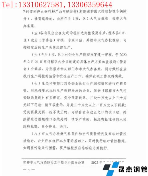 日前,邯鄲市大氣污染防治工作領導小組辦公室印發了《邯鄲市2022年2月21日至3月31日重點行業生產調控方案》。方案中對2022年2月21日至3月31日時段內的鋼鐵、焦化、水泥、獨立球團、鑄造、炭素等重點行業開展停限產措施。