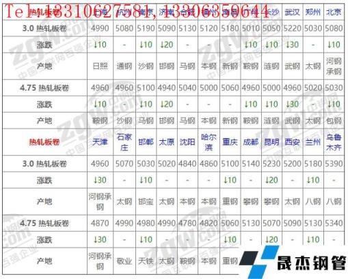 全國24個主要市場4.75 熱軋板卷平均價格5012元/噸,較上個交易日下調6元/噸。