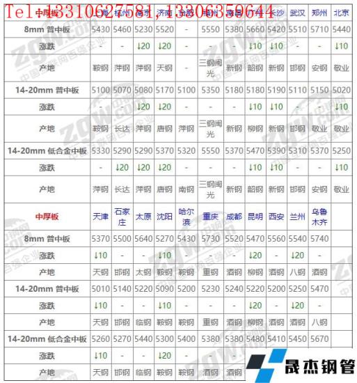 據價格顯示:今全國中板窄幅下調,下調幅度10-20左右,期鋼疲弱影響市場悲觀情緒蔓延,需求持單觀望,整體交投弱無改觀,商家隨行低靠,操作積極性較低;