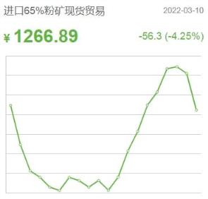3月11日,根據今日鐵礦的消息來看,本周進口鐵礦石價格整體下跌,而國產鐵礦價格走勢良好。分類別來看,進口65%粉礦現貨貿易價格1266.89元/噸,較前一個交易日下跌56.3,跌幅4.25%;進口65%粉礦到岸價格186.69美元/噸,較前一個交易日下跌2.26,跌幅1.2%;國產65鐵精礦漲0.91收于1057.58元/噸,漲幅0.09%;國產62%鐵精礦漲0.75收于944.37元/噸,漲幅0.08%。