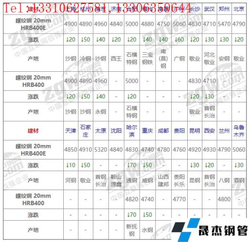 免責聲明:本網站(山東聊城晟杰無縫鋼管廠www.gdqiayu.com)刊載的“3月14日全國鋼材_無縫鋼管實時價格!”等均源于網絡,版權歸原作者所有,且僅代表原作者觀點,本文所載信息僅供參考。轉載僅為學習與交流之目的,如無意中侵犯您的合法權益,請及時聯系刪除。本網站刊登此篇文章并不意味著本站贊同其觀點或證實其內容的真實性,我們不對其科學性、嚴肅性等作任何形式的保證。如果侵犯了您的版權,請盡快聯系我們予以撤銷,謝謝合作!