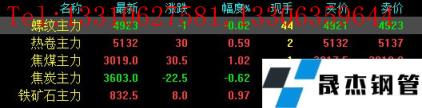 今日螺紋主力期貨跌,收報4923,跌幅0.02%;熱卷主力漲30,收報5132,漲幅0.59%;焦煤主力漲30.5,收報3019,漲幅1.02%;焦炭主力跌22.5,收報3603,跌幅0.62%;鐵礦石主力漲8,收報832.5,漲幅0.97%。