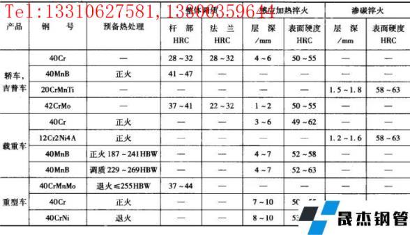 越野車的內、外半軸一般是變截面臺階軸,要求較高的沖擊韌度;過去往往采用低碳合金鋼滲碳處理,現多采用中碳合金鋼感應淬火。3 半軸的熱處理工藝