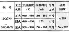 20CrMnTi鋼半軸的滲碳熱處理工藝見圖8 。