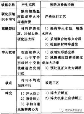 ▼表15半軸表面感應淬火常見缺陷的預防及補救措施