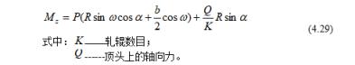 當有頂頭時如圖4-13所示,在前進方向受到頂頭的軸向阻力(Q),這時傳動軋輥所需總軋制力矩為: