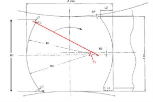 導盤的輪廓是由一般有兩個半徑入口半徑R2、出口半徑R1組成,根據經驗我們可以確定其值的大?。?/p>
