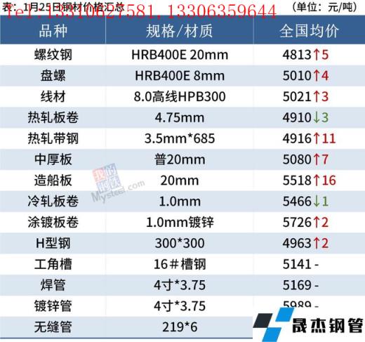中厚板:1月25日,全國24個主要城市20mm普板均價5080元/噸,較上個交易日上漲7元/噸。據了解,受臨近春節影響,多地物流車輛減量、運力下降、運費上漲,同時,市場上商戶陸續放假,成交減量,多地進入有價無市狀態。受華北地區部分無縫鋼管廠檢修停產影響,市場節后預期較好,多地仍在小幅上調報價;其他區域報價以穩為主。綜合來看,預計節前國內中厚板報價短期繼續盤整運行。