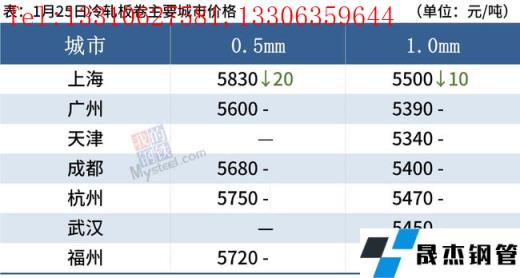 冷軋板卷:1月25日,全國24個主要城市1.0mm冷卷均價5466元/噸,較上個交易日下跌1元/噸?,F貨市場已經進入有價無市狀態。冬奧會臨近,部分無縫鋼管廠受到環保政策的影響,陸續發布停產檢修計劃,對市場資源供給有一定影響,再加上原料價格上漲,使得目前冷軋板卷價格處于相對高位。綜合來看,故預計26日國內冷軋板卷價格或將平穩運行。