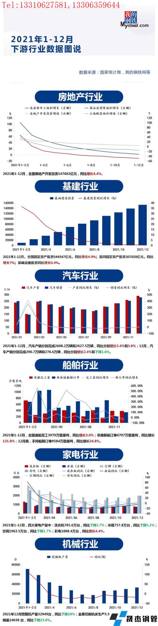 匯總了2021年1-12月部分下游用鋼行業的運行情況。