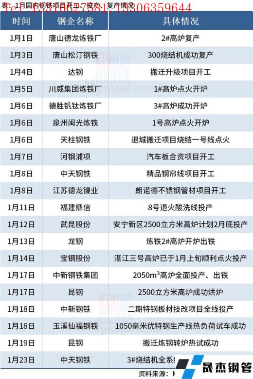 免責聲明:本網站(山東聊城晟杰無縫鋼管廠www.gdqiayu.com)刊載的“1月國內20個鋼鐵項目開工、投產和復產”等均源于網絡,版權歸原作者所有,且僅代表原作者觀點,本文所載信息僅供參考。轉載僅為學習與交流之目的,如無意中侵犯您的合法權益,請及時聯系刪除。本網站刊登此篇文章并不意味著本站贊同其觀點或證實其內容的真實性,我們不對其科學性、嚴肅性等作任何形式的保證。如果侵犯了您的版權,請盡快聯系我們予以撤銷,謝謝合作!