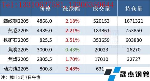 免責聲明:本網站(山東聊城晟杰無縫鋼管廠www.gdqiayu.com)刊載的“2022年02月07日午報:鋼價全線上漲,鐵礦石期貨漲逾3%”等均源于網絡,版權歸原作者所有,且僅代表原作者觀點,本文所載信息僅供參考。轉載僅為學習與交流之目的,如無意中侵犯您的合法權益,請及時聯系刪除。本網站刊登此篇文章并不意味著本站贊同其觀點或證實其內容的真實性,我們不對其科學性、嚴肅性等作任何形式的保證。如果侵犯了您的版權,請盡快聯系我們予以撤銷,謝謝合作!
