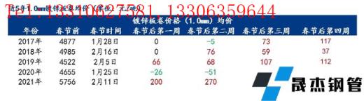 小編匯總近5年春節后四周鍍鋅板卷均價變化情況,以供參考。