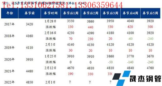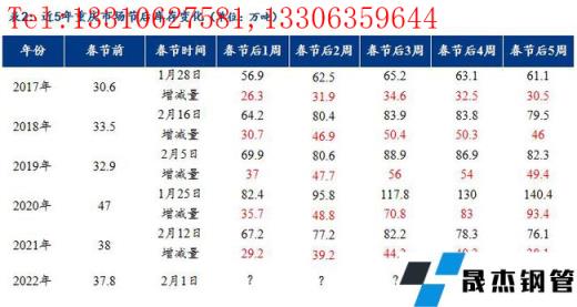 免責聲明:本網站(山東聊城晟杰無縫鋼管廠www.gdqiayu.com)刊載的“近5年春節前后重慶螺紋鋼價格和庫存走勢”等均源于網絡,版權歸原作者所有,且僅代表原作者觀點,本文所載信息僅供參考。轉載僅為學習與交流之目的,如無意中侵犯您的合法權益,請及時聯系刪除。本網站刊登此篇文章并不意味著本站贊同其觀點或證實其內容的真實性,我們不對其科學性、嚴肅性等作任何形式的保證。如果侵犯了您的版權,請盡快聯系我們予以撤銷,謝謝合作!