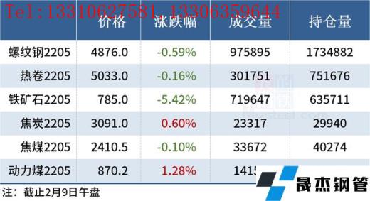 免責聲明:本網站(山東聊城晟杰無縫鋼管廠www.gdqiayu.com)刊載的“2022年02月09日午報:鋼價多數上漲,鐵礦石期貨跌逾5%”等均源于網絡,版權歸原作者所有,且僅代表原作者觀點,本文所載信息僅供參考。轉載僅為學習與交流之目的,如無意中侵犯您的合法權益,請及時聯系刪除。本網站刊登此篇文章并不意味著本站贊同其觀點或證實其內容的真實性,我們不對其科學性、嚴肅性等作任何形式的保證。如果侵犯了您的版權,請盡快聯系我們予以撤銷,謝謝合作!