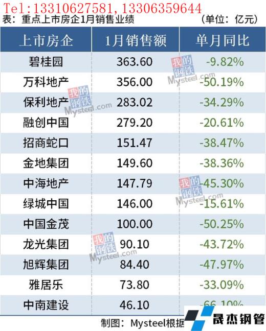 免責聲明:本網站(山東聊城晟杰無縫鋼管廠www.gdqiayu.com)刊載的“13家重點房企1月銷售同比大幅下滑,房地產市場低溫運行”等均源于網絡,版權歸原作者所有,且僅代表原作者觀點,本文所載信息僅供參考。轉載僅為學習與交流之目的,如無意中侵犯您的合法權益,請及時聯系刪除。本網站刊登此篇文章并不意味著本站贊同其觀點或證實其內容的真實性,我們不對其科學性、嚴肅性等作任何形式的保證。如果侵犯了您的版權,請盡快聯系我們予以撤銷,謝謝合作!