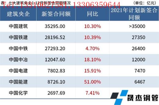 免責聲明:本網站(山東聊城晟杰無縫鋼管廠www.gdqiayu.com)刊載的“7家建筑央企2021年新簽合同總額超12萬億元,同比增長12%”等均源于網絡,版權歸原作者所有,且僅代表原作者觀點,本文所載信息僅供參考。轉載僅為學習與交流之目的,如無意中侵犯您的合法權益,請及時聯系刪除。本網站刊登此篇文章并不意味著本站贊同其觀點或證實其內容的真實性,我們不對其科學性、嚴肅性等作任何形式的保證。如果侵犯了您的版權,請盡快聯系我們予以撤銷,謝謝合作!