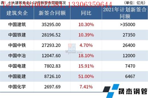 從各大央企簽單數據來看,截止2月11日,共有7家建筑央企公布其2021年新簽合同額情況??傮w來看,這7家建筑央企1-12月同比均實現正增長,累計新簽合同總額超12萬億元,較去年同期(108812億元)增長12%。