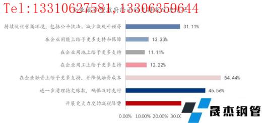 8、對于2022年發展前景預期偏謹慎。本次調研樣本企業中對2022年發展前景預期持樂觀或比較以及非常樂觀的企業占比57.58%,不太樂觀或比較悲觀的企業占比為33.33%,因此對于未來一段時間的投入情況,持適當或大規模增加的企業占比為46.46%,暫不增加投入的占比為43.43%,適當縮減或退出部分業務的企業占比為10.10%,由此看來,目前整體經濟環境的確面臨一定壓力,導致企業信心相對保守,而主要原因是經濟下行壓力下,穩增長政策力度不夠。企業希望得到政府的支持與改進的呼聲最大的是開展更大力度的減稅降費以及降低融資成本,進一步清理拖欠賬款,確保及時支付,持續優化營商環境,公平執法、減少微觀干預。