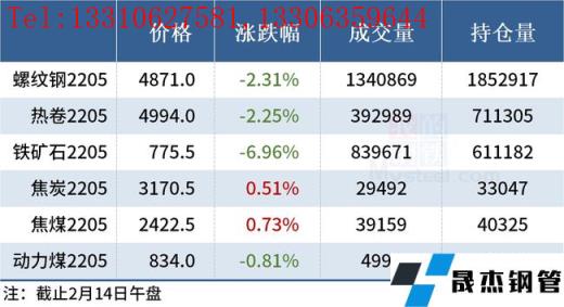 免責聲明:本網站(山東聊城晟杰無縫鋼管廠www.gdqiayu.com)刊載的“2022年02月14日午報:鋼價多數下跌,鐵礦石期貨跌逾6%”等均源于網絡,版權歸原作者所有,且僅代表原作者觀點,本文所載信息僅供參考。轉載僅為學習與交流之目的,如無意中侵犯您的合法權益,請及時聯系刪除。本網站刊登此篇文章并不意味著本站贊同其觀點或證實其內容的真實性,我們不對其科學性、嚴肅性等作任何形式的保證。如果侵犯了您的版權,請盡快聯系我們予以撤銷,謝謝合作!