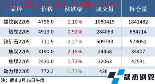 免責聲明:本網站(山東聊城晟杰無縫鋼管廠www.gdqiayu.com)刊載的“2022年02月16日午報:鋼價局部反彈,鋼材_無縫鋼管和焦炭期貨上漲”等均源于網絡,版權歸原作者所有,且僅代表原作者觀點,本文所載信息僅供參考。轉載僅為學習與交流之目的,如無意中侵犯您的合法權益,請及時聯系刪除。本網站刊登此篇文章并不意味著本站贊同其觀點或證實其內容的真實性,我們不對其科學性、嚴肅性等作任何形式的保證。如果侵犯了您的版權,請盡快聯系我們予以撤銷,謝謝合作!