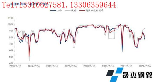 山西區域:本周山西區域部分無縫厚壁鋼管廠家由于環保政策加嚴采取短期燜爐措施,周鐵水產量51萬噸,周環比減少2.4萬噸,產能利用率為76.74%,周環比下降3.61%。