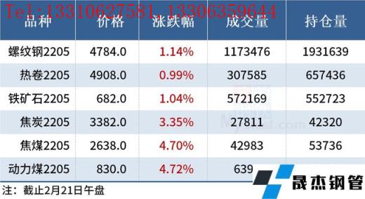 免責聲明:本網站(山東聊城晟杰無縫鋼管廠www.gdqiayu.com)刊載的“2022年02月21日午報:鋼價多數上漲,黑色期貨集體飄紅”等均源于網絡,版權歸原作者所有,且僅代表原作者觀點,本文所載信息僅供參考。轉載僅為學習與交流之目的,如無意中侵犯您的合法權益,請及時聯系刪除。本網站刊登此篇文章并不意味著本站贊同其觀點或證實其內容的真實性,我們不對其科學性、嚴肅性等作任何形式的保證。如果侵犯了您的版權,請盡快聯系我們予以撤銷,謝謝合作!