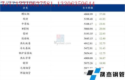 2月25日普鋼絕對價格指數變化:綜合指數5094.74,下跌32.4;螺紋鋼指數4868.99,下跌37.08;線材指數5198.48,下跌41.83;熱軋板卷指數4912.81,下跌32.75;冷軋板卷指數5472.91,下跌31.43;中厚板指數5108.17,下跌23.81。