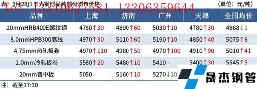◎ 2月28日唐山遷安地區普方坯資源出廠含稅穩,報4550元。