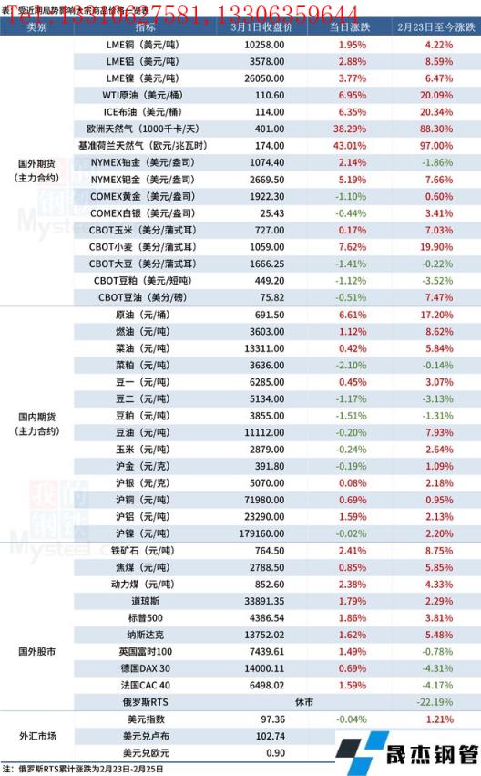 免責聲明:本網站(山東聊城晟杰無縫鋼管廠www.gdqiayu.com)刊載的“受近期局勢影響大宗商品價格一覽表(3月2日)”等均源于網絡,版權歸原作者所有,且僅代表原作者觀點,本文所載信息僅供參考。轉載僅為學習與交流之目的,如無意中侵犯您的合法權益,請及時聯系刪除。本網站刊登此篇文章并不意味著本站贊同其觀點或證實其內容的真實性,我們不對其科學性、嚴肅性等作任何形式的保證。如果侵犯了您的版權,請盡快聯系我們予以撤銷,謝謝合作!