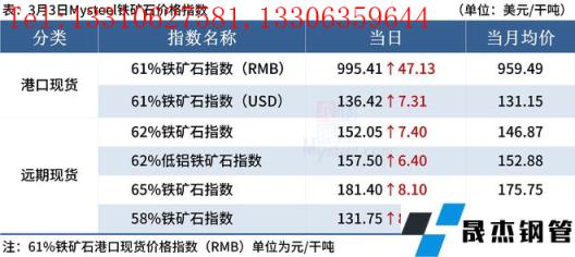 ◎ 3月3日,全國主港鐵礦石成交94.00萬噸,環比增19.3%;237家主流貿易商建材成交17.00萬噸,環比增7.4%。