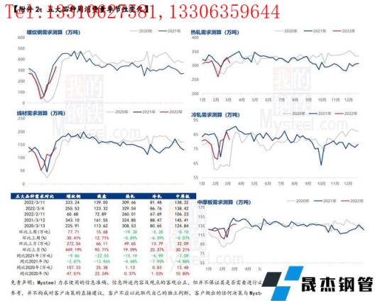 本周產量品種分化突出,呈現長降板增表現。主要原因在于殘奧會限產影響落地,山西、河北等省高爐和軋機設備有部分停休,進而導致板材減量突出。但是對于長材來說,限產區域雖有減量,但華南、華東等區域增量比例大于限產區域減量幅度,因而使得建材整體供應水平仍有回升。綜合來看,殘奧會臨近結束,各區域限產影響逐步減弱,加之3月正值需求恢復階段,高爐利潤水平在200-400元/噸左右,提振企業生產積極性,進而使得供應水平增量有所保證。