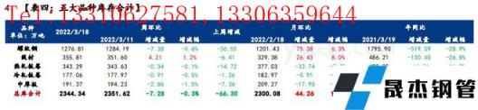 據統計,本周五大品種庫存總量為2344.34萬噸,環比上周減少7.28萬噸,其中建材庫存減少3.17萬噸,降幅為0.2%;板材庫存減少4.11萬噸,降幅0.6%。上期庫存總量為2351.62萬噸,環比上周減少66.3萬噸,其中建材庫存減少42.96萬噸,降幅為2.6%;板材庫存減少23.34萬噸,降幅3.2%。