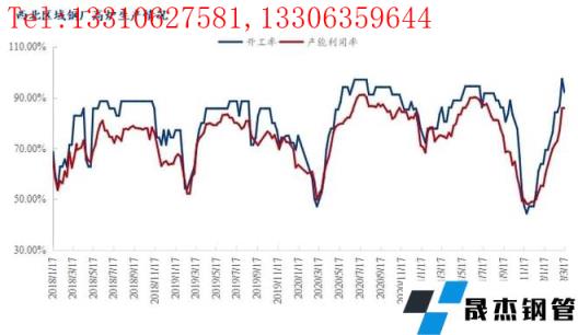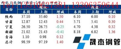本周西北區域15家建筑厚壁無縫鋼管生產廠家48條產線實際開工41條,軋線開工率為85.4%,周環比下降4%;建材產線實際產量約66萬噸,周環比減少約0.5萬噸,產能利用率為79.8%,周環比下降0.3%,減量部分主要在陜西LG無縫厚壁鋼管廠家高爐停產兩條軋線同步檢修。