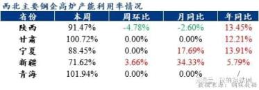 本周對西北區域15家建筑厚壁無縫鋼管生產企業同口徑調查顯示,目前西北區域15家鋼鐵生產企業38座高爐實際開工高爐35座,陜西地區新增2座高爐復產,其余區域維持現狀。高爐整體開工率為92.1%,周環比下降5.2%;高爐實際產量71萬噸,周環比減少約0.2萬噸;高爐產能利用率85.8%,周環比持平。