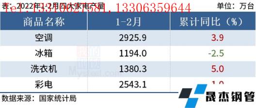 免責聲明:本網站(山東聊城晟杰無縫鋼管廠www.gdqiayu.com)刊載的“統計局:1-2月中國四大家電產量3增1降”等均源于網絡,版權歸原作者所有,且僅代表原作者觀點,本文所載信息僅供參考。轉載僅為學習與交流之目的,如無意中侵犯您的合法權益,請及時聯系刪除。本網站刊登此篇文章并不意味著本站贊同其觀點或證實其內容的真實性,我們不對其科學性、嚴肅性等作任何形式的保證。如果侵犯了您的版權,請盡快聯系我們予以撤銷,謝謝合作!