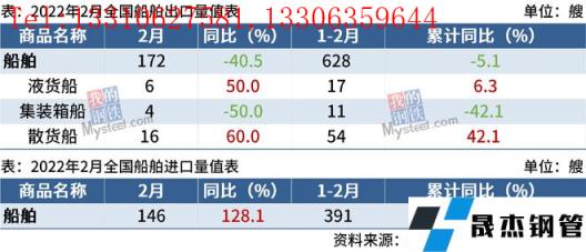 免責聲明:本網站(山東聊城晟杰無縫鋼管廠www.gdqiayu.com)刊載的“海關總署:2月中國船舶進口146艘,同比增長128.1%”等均源于網絡,版權歸原作者所有,且僅代表原作者觀點,本文所載信息僅供參考。轉載僅為學習與交流之目的,如無意中侵犯您的合法權益,請及時聯系刪除。本網站刊登此篇文章并不意味著本站贊同其觀點或證實其內容的真實性,我們不對其科學性、嚴肅性等作任何形式的保證。如果侵犯了您的版權,請盡快聯系我們予以撤銷,謝謝合作!