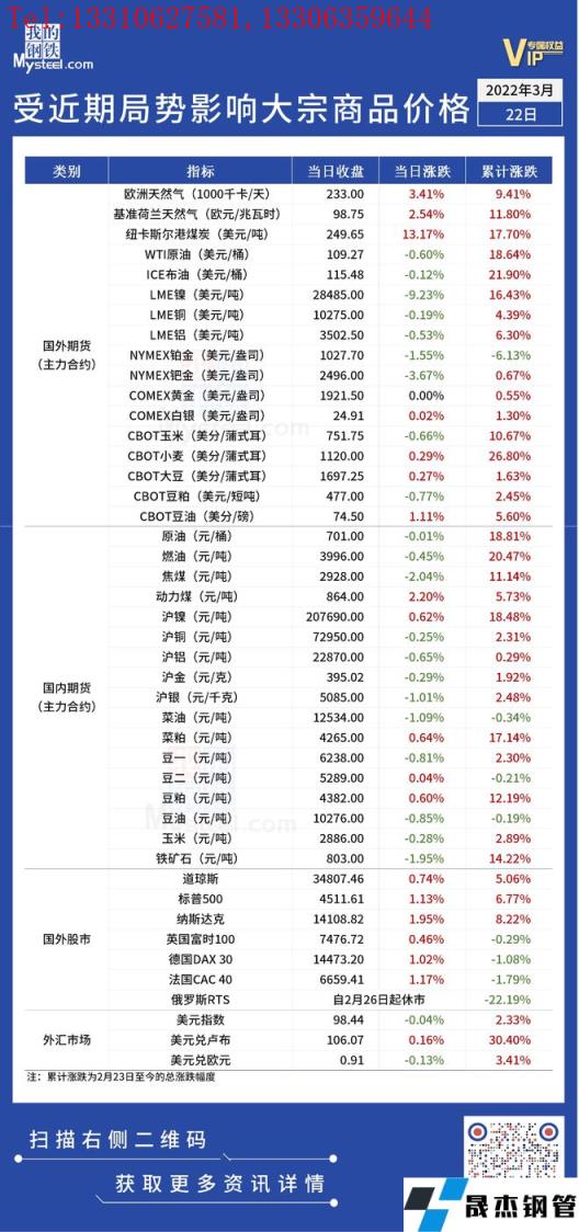 免責聲明:本網站(山東聊城晟杰無縫鋼管廠www.gdqiayu.com)刊載的“受近期局勢影響大宗商品價格一覽表(3月22日)”等均源于網絡,版權歸原作者所有,且僅代表原作者觀點,本文所載信息僅供參考。轉載僅為學習與交流之目的,如無意中侵犯您的合法權益,請及時聯系刪除。本網站刊登此篇文章并不意味著本站贊同其觀點或證實其內容的真實性,我們不對其科學性、嚴肅性等作任何形式的保證。如果侵犯了您的版權,請盡快聯系我們予以撤銷,謝謝合作!
