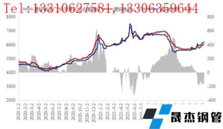 華東和華南作為鍍鋅板卷三大主流區域中的兩個,其分工職責略有不同,華東地區以上海為例,其更多是作為無縫厚壁鋼管廠家投放資源的聚集地。隨著周邊江蘇、浙江等下游產業越來越集中,上海地區資源真正消化也是依托周邊市場。而華南市場一直以來作為消費市場,基本屬于是資源流入型區域,尤其是華東、華北地區資源,依托水運將大部分資源發往華南。無論是從地理位置還是資源消費,華南地區價格本應該處于三大主流區域中價格最高的水平,但是從圖1可以明顯看出,2021年6月中下旬到8月上旬,差不多維持了一個半月的倒掛,華南地區鍍鋅板卷價格較華東地區倒掛幅度達到200元/噸左右。筆者分析來看,2021年6月份市場仍處于上漲過程中,隨著價格的不斷上漲,華東與華南地區的價格逐漸拉開差距,華南地區的上漲速度明顯不及華東。在下跌過程中,華南地區價格表現更為堅挺,逐漸與華東地區拉開差距,到11月份兩者間差距擴大至全年最高450元/噸,而后華南價格高于華東地區逐漸恢復正常水平。