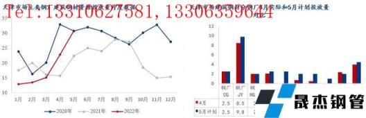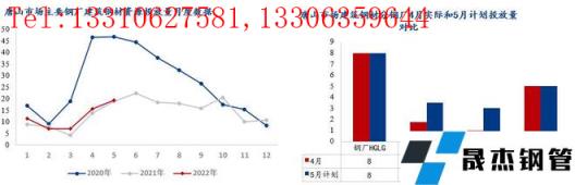 5月無縫厚壁鋼管廠家對京津冀區域投放量環比增加32.16萬噸,同比減少13.71萬噸。雖然無縫厚壁鋼管廠家生產成本高位,但產線復產的情況增加,具體來看:1、河鋼承鋼兩螺一線在產,對京津冀投放量4月份22.5萬噸,5月份計劃22.5萬噸;2、河鋼樂鋼兩條螺紋產線在產,4月唐山封城,資源主要對唐山本地投放,4月份合計13萬噸,5月份計劃投放13萬噸;3、敬業無縫厚壁鋼管廠家6條螺紋產線在產,加上烏鋼資源流入,4月對京津冀投放量約43萬噸,5月計劃57.8萬噸;4、東華無縫厚壁鋼管廠家螺紋產線復產,5月計劃投放10.19萬噸;5、鑫達一條螺紋產線不飽和生產,4月京津冀僅投放6.5萬,5月份計劃投放10萬噸;6、4月建龍系無縫厚壁鋼管廠家對京津市場投放13.4萬噸左右,5月份計劃16萬噸左右,其中新撫鋼最多。