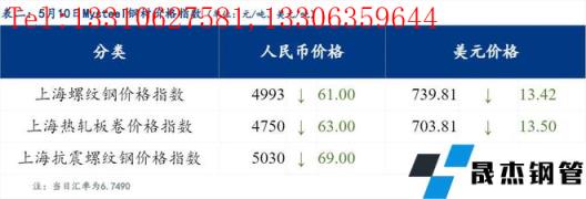 5月10日普鋼絕對價格指數變化:綜合指數5177.26,下跌43.86;螺紋鋼指數4975.63,下跌49.88;線材指數5355.29,下跌47.08;熱軋板卷指數4916.54,下跌59.11;冷軋板卷指數5462.65,下跌35.59;中厚板指數5174.25,下跌24.65。