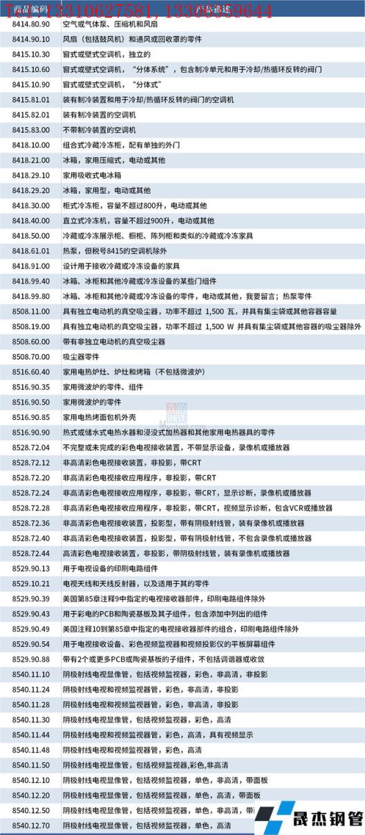 據不完全整理,美國征收中國產品關稅的清單,涉及家電類產品如下: