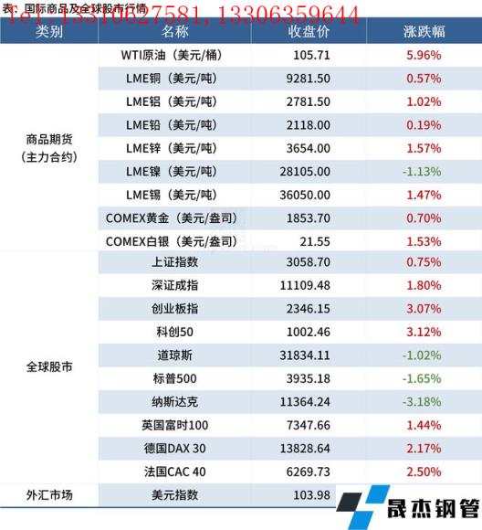 ◎ 國家發改委日前向各地下發2022年粗鋼產量壓減考核基數核對工作通知,要求各地核實反饋考核基數。國家發改委表示,為保持政策的連續性穩定性,鞏固好粗鋼產量壓減成果,2022年,國家發展改革委、工業和信息化部、生態環境部、國家統計局四部門將繼續開展全國粗鋼產量壓。