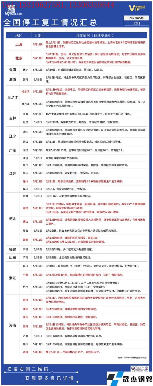 免責聲明:本網站(山東聊城晟杰無縫鋼管廠www.gdqiayu.com)刊載的“疫情影響丨全國停工復工情況匯總(5月12日)”等均源于網絡,版權歸原作者所有,且僅代表原作者觀點,本文所載信息僅供參考。轉載僅為學習與交流之目的,如無意中侵犯您的合法權益,請及時聯系刪除。本網站刊登此篇文章并不意味著本站贊同其觀點或證實其內容的真實性,我們不對其科學性、嚴肅性等作任何形式的保證。如果侵犯了您的版權,請盡快聯系我們予以撤銷,謝謝合作!