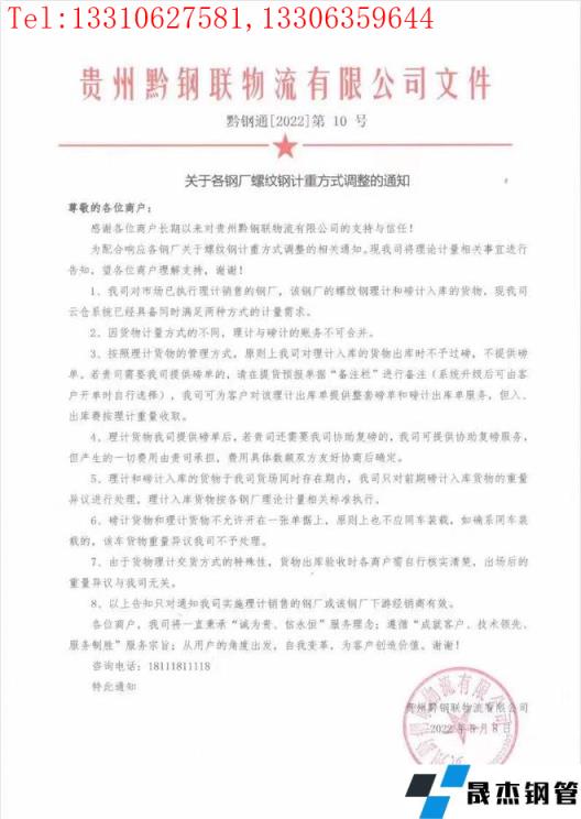 免責聲明:本網站(山東聊城晟杰無縫鋼管廠www.gdqiayu.com)刊載的“貴州黔鋼聯物流有限公司關于各無縫鋼管廠家螺紋鋼計重方式調整的通知”等均源于網絡,版權歸原作者所有,且僅代表原作者觀點,本文所載信息僅供參考。轉載僅為學習與交流之目的,如無意中侵犯您的合法權益,請及時聯系刪除。本網站刊登此篇文章并不意味著本站贊同其觀點或證實其內容的真實性,我們不對其科學性、嚴肅性等作任何形式的保證。如果侵犯了您的版權,請盡快聯系我們予以撤銷,謝謝合作!