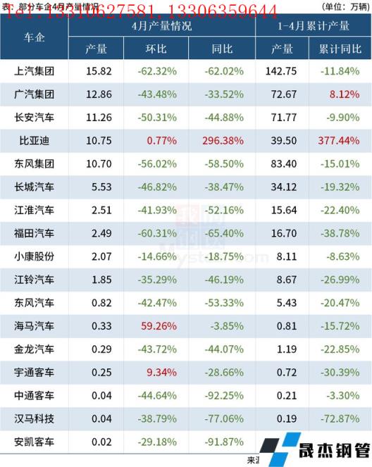 免責聲明:本網站(山東聊城晟杰無縫鋼管廠www.gdqiayu.com)刊載的“4月19家車企銷量出爐,超九成同比大降”等均源于網絡,版權歸原作者所有,且僅代表原作者觀點,本文所載信息僅供參考。轉載僅為學習與交流之目的,如無意中侵犯您的合法權益,請及時聯系刪除。本網站刊登此篇文章并不意味著本站贊同其觀點或證實其內容的真實性,我們不對其科學性、嚴肅性等作任何形式的保證。如果侵犯了您的版權,請盡快聯系我們予以撤銷,謝謝合作!